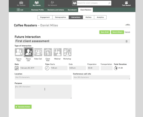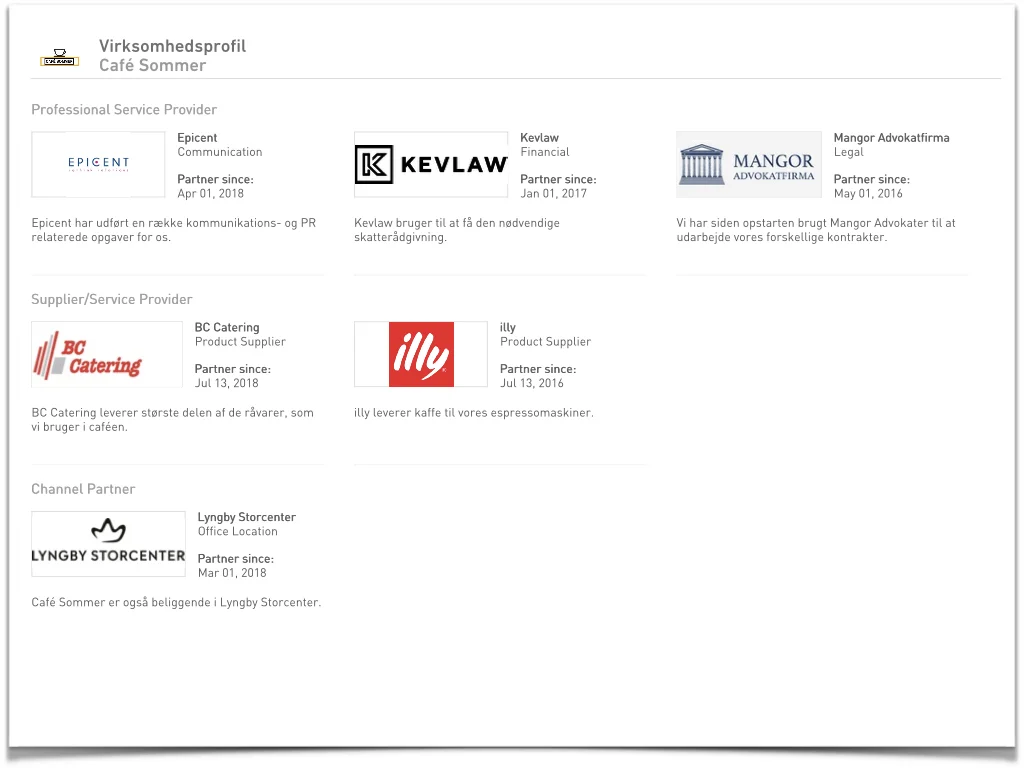 Når du zoomer ind, vil flere detaljer dukke op på kortet. Når du klikker på en pin, vil et pop-up-felt dukke op med relevant information om kundens firma.